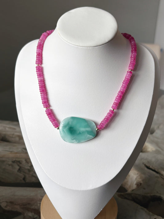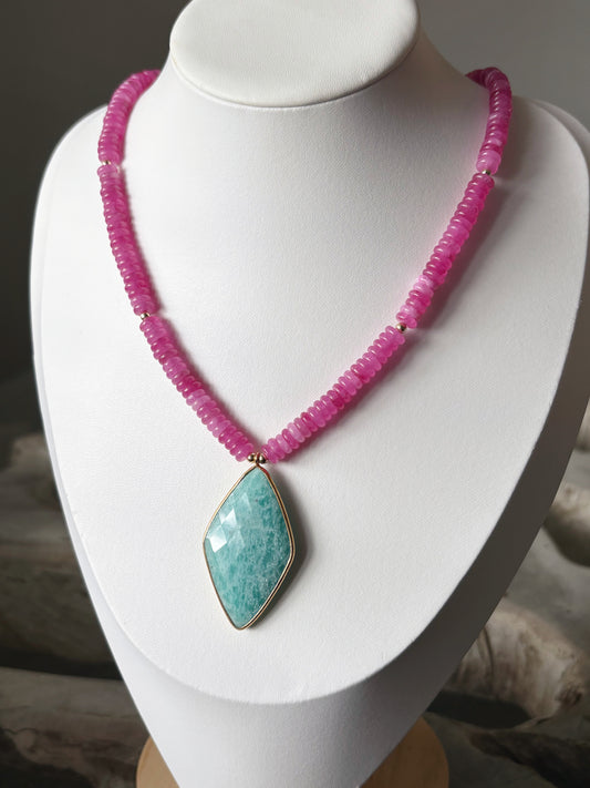 Pink Jade and Amazonite Necklace