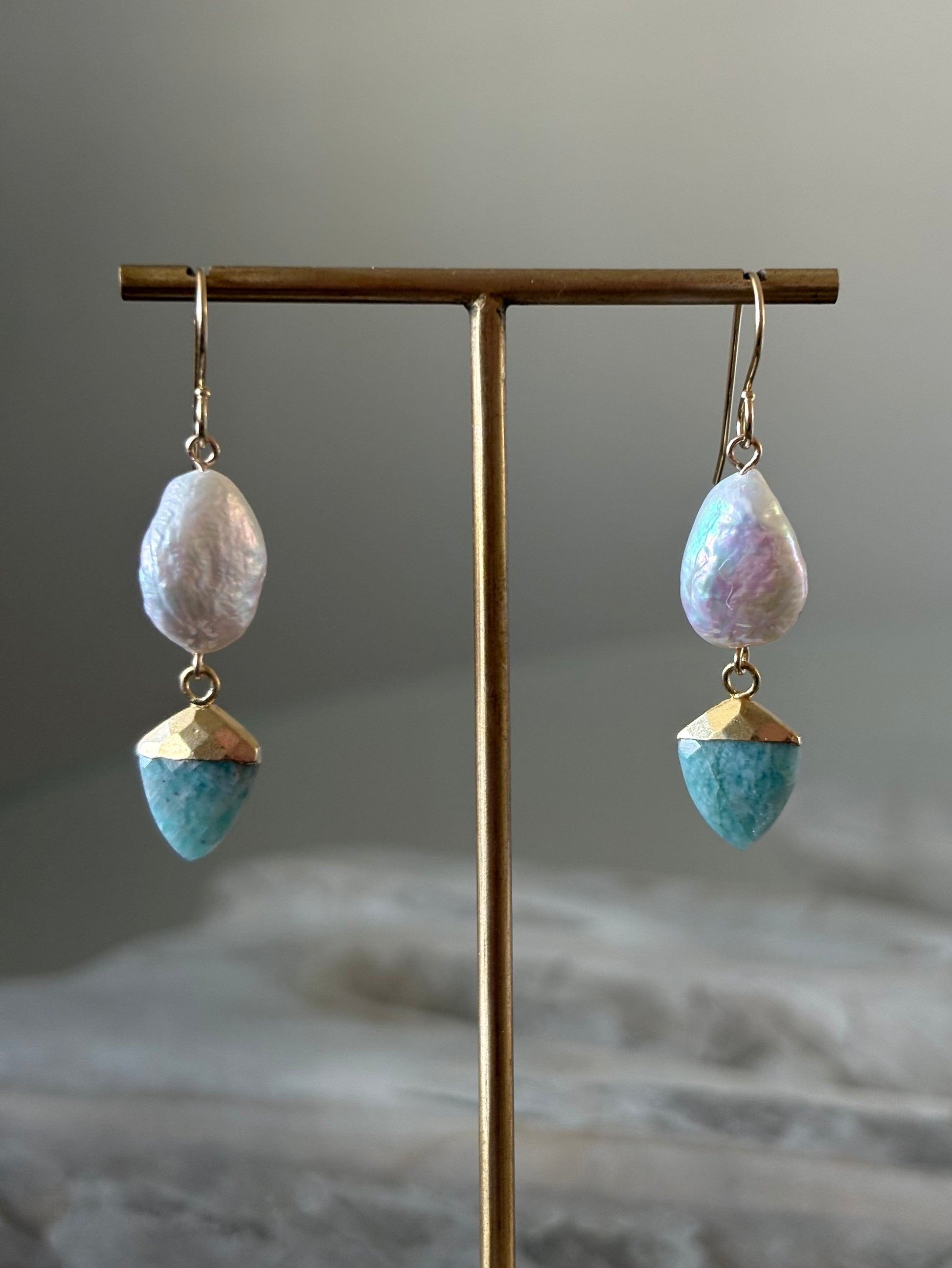 Amazonite and Pearl Earrings
