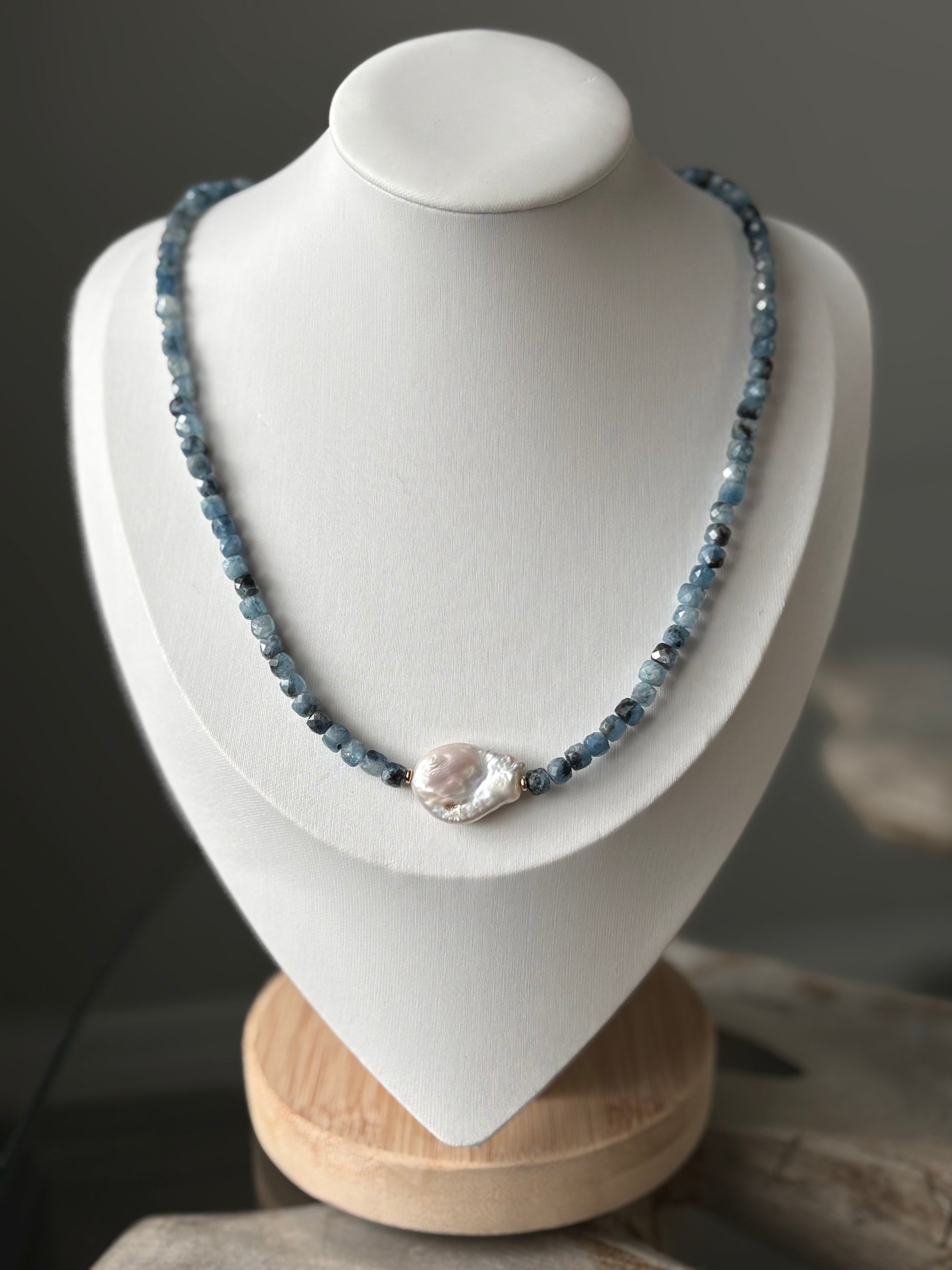 Dark Aquamarine and Pearl Necklace