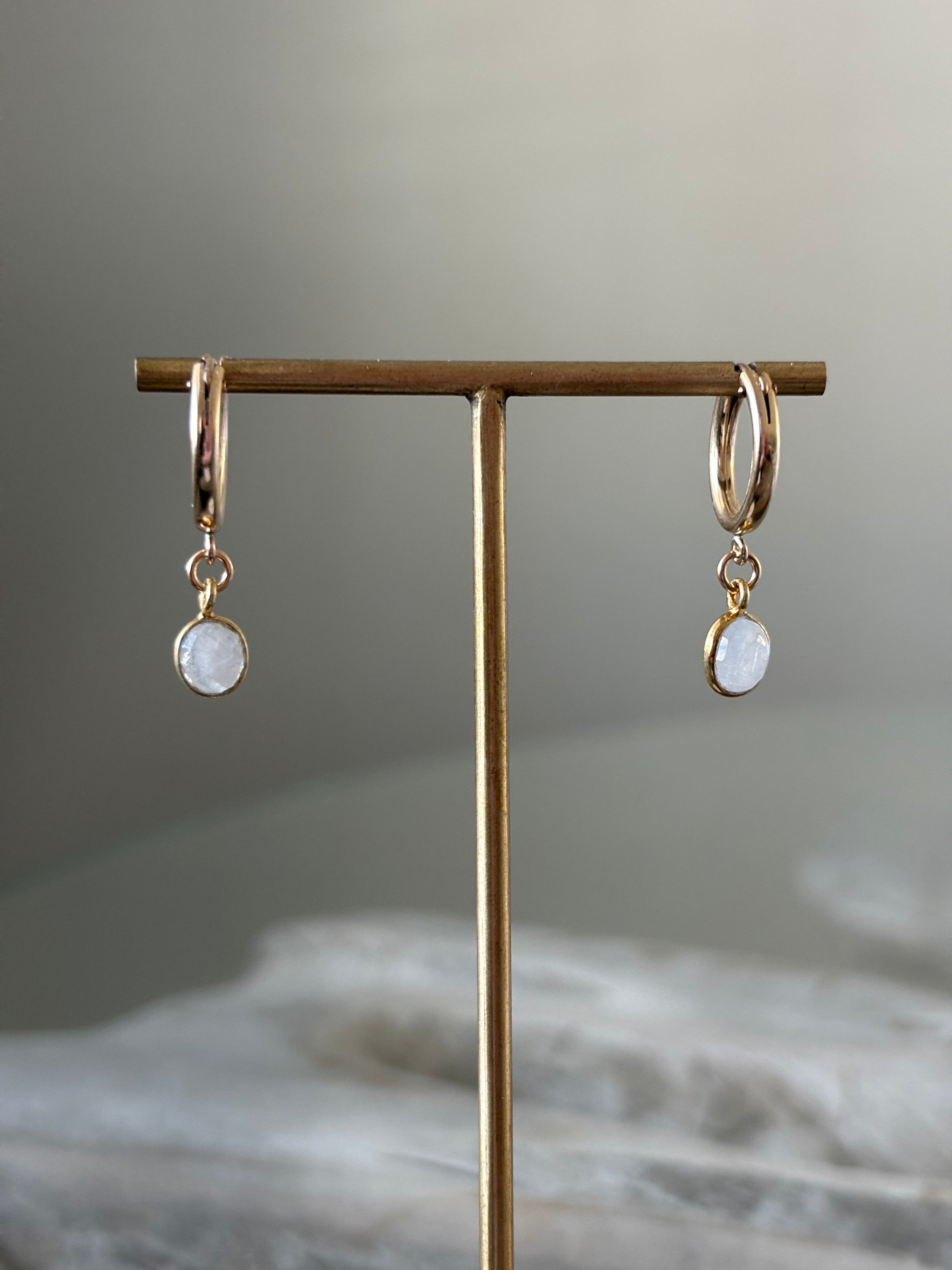 Rainbow Moonstone Gold Hoops